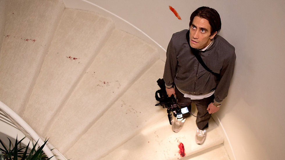 "Nightcrawler" follows the story of Louis Bloom, a driven and amoral man who stumbles into the world of nightcrawling—filming violent incidents and selling the footage to news stations. Lou then continues to exploit the profits and power he can attain - thanks to the network's insatiable hunger for sensational footage - and takes us all on this destructive path to "success".